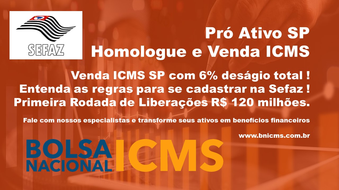 Cadastre hoje mesmo sua empresa na Bolsa e venda ICMS SP sem pagar taxa de intermediação !